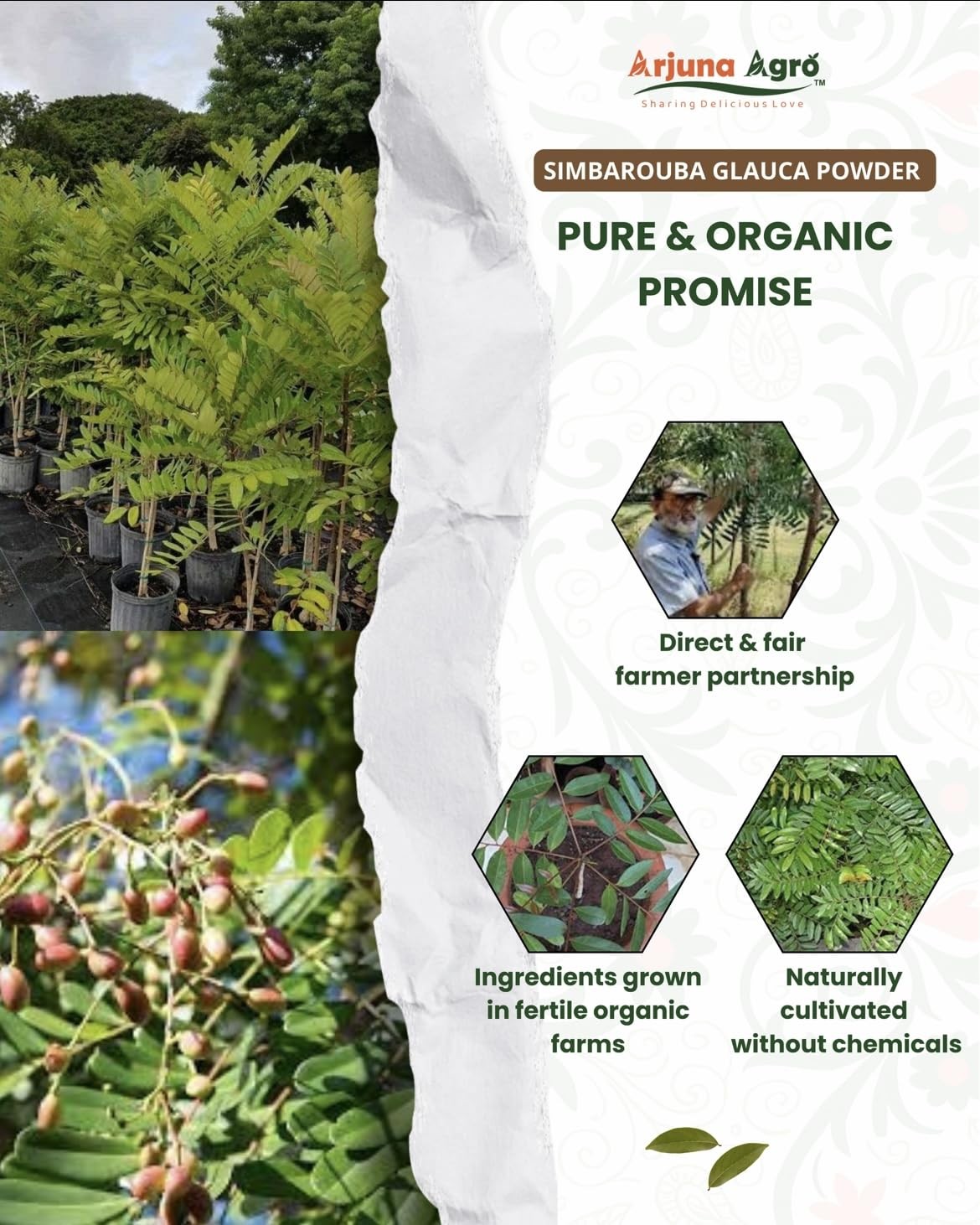 Arjuna Agro Simbarouba Powder is a finely ground herbal powder made from selected simbarouba bark. The powder is processed without additives, preservatives, or artificial ingredients. Its clean composition and fine texture make it suitable for traditional uses. Hygienically packed to maintain freshness and consistency.
