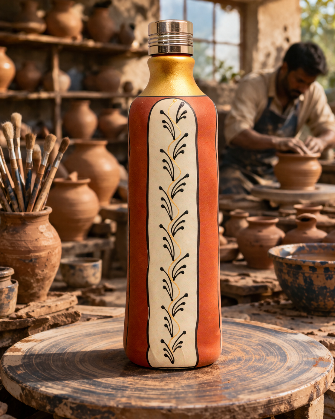 Bring home a perfect blend of tradition, wellness, and artistic elegance with this beautifully handcrafted terracotta water bottle by SUGAMYA®.