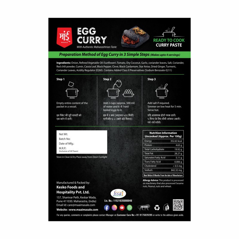 Maai Masale - Masala Egg Curry Paste, Ready to Cook Spice Mix l Easy to Make Instant Masala Curry Paste