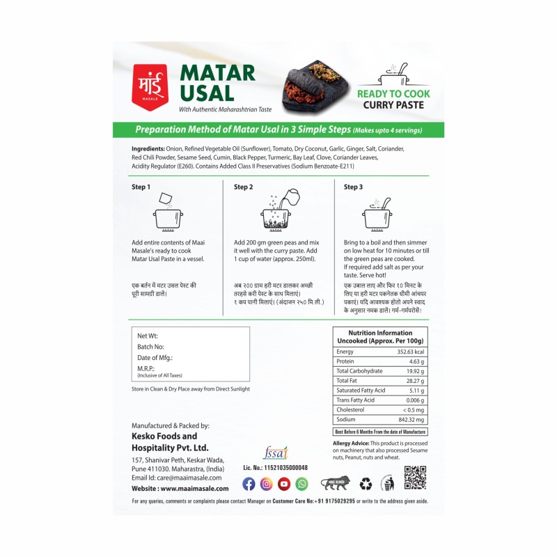 Maai Masale - Matar Usal Curry Paste, Ready to Cook Spice Mix l Easy to Make Masala Curry Paste