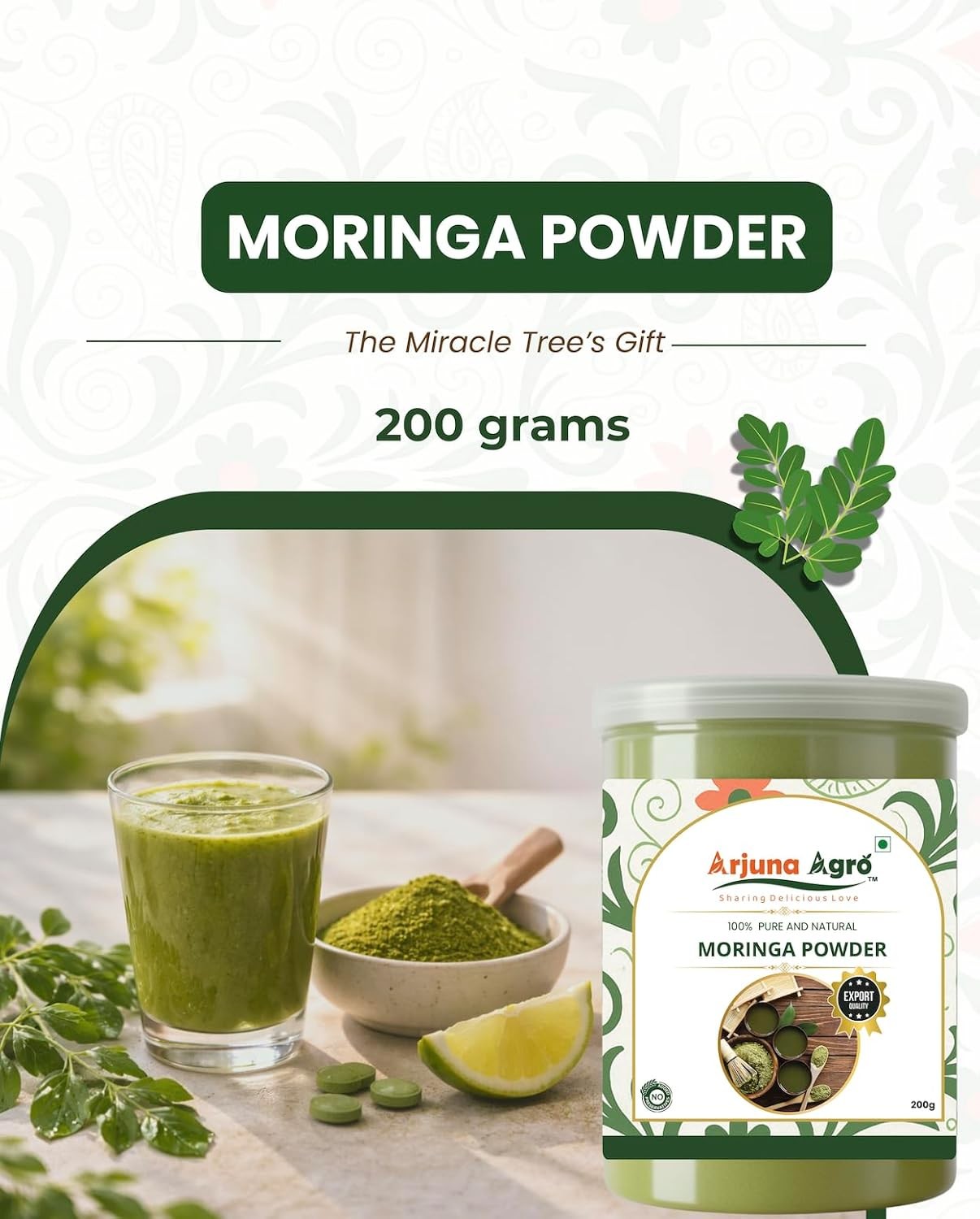 Arjuna Agro Moringa Leaf Powder | Pure Drumstick Leaf | Single-Ingredient Green Blend for Smoothies & Drinks (200 Grams)