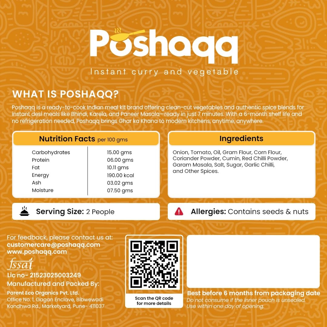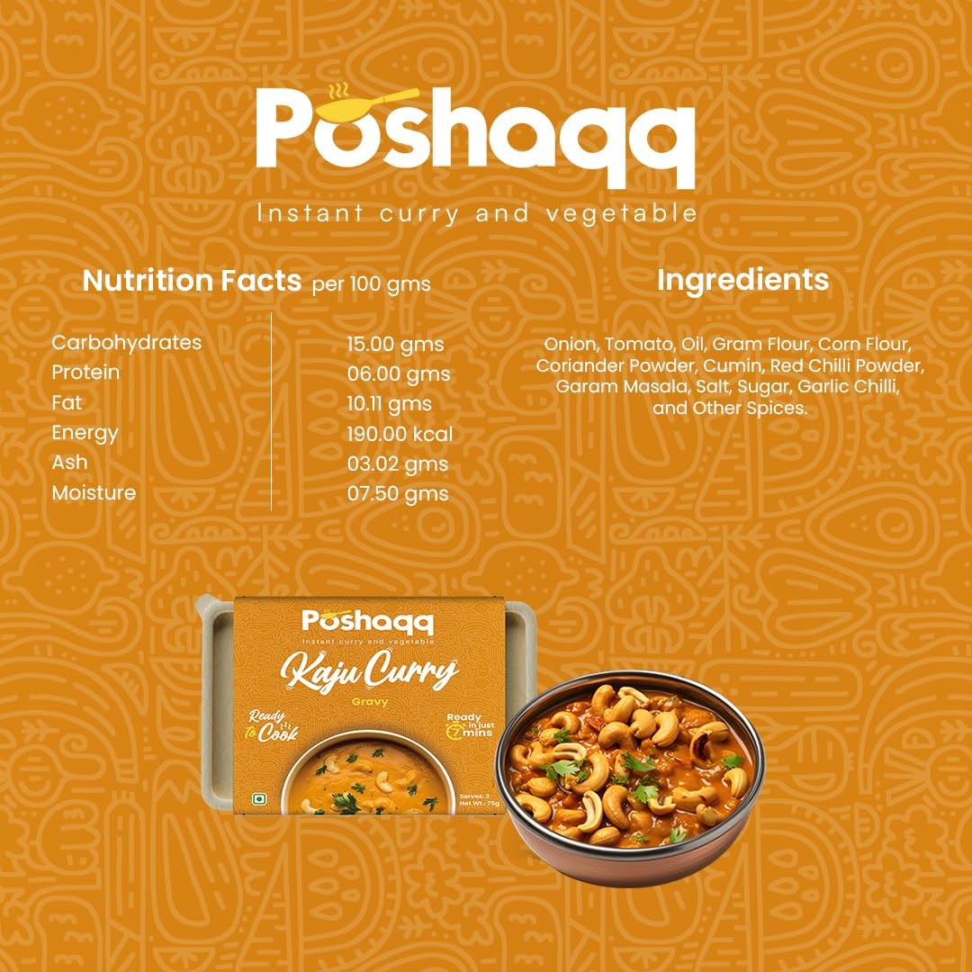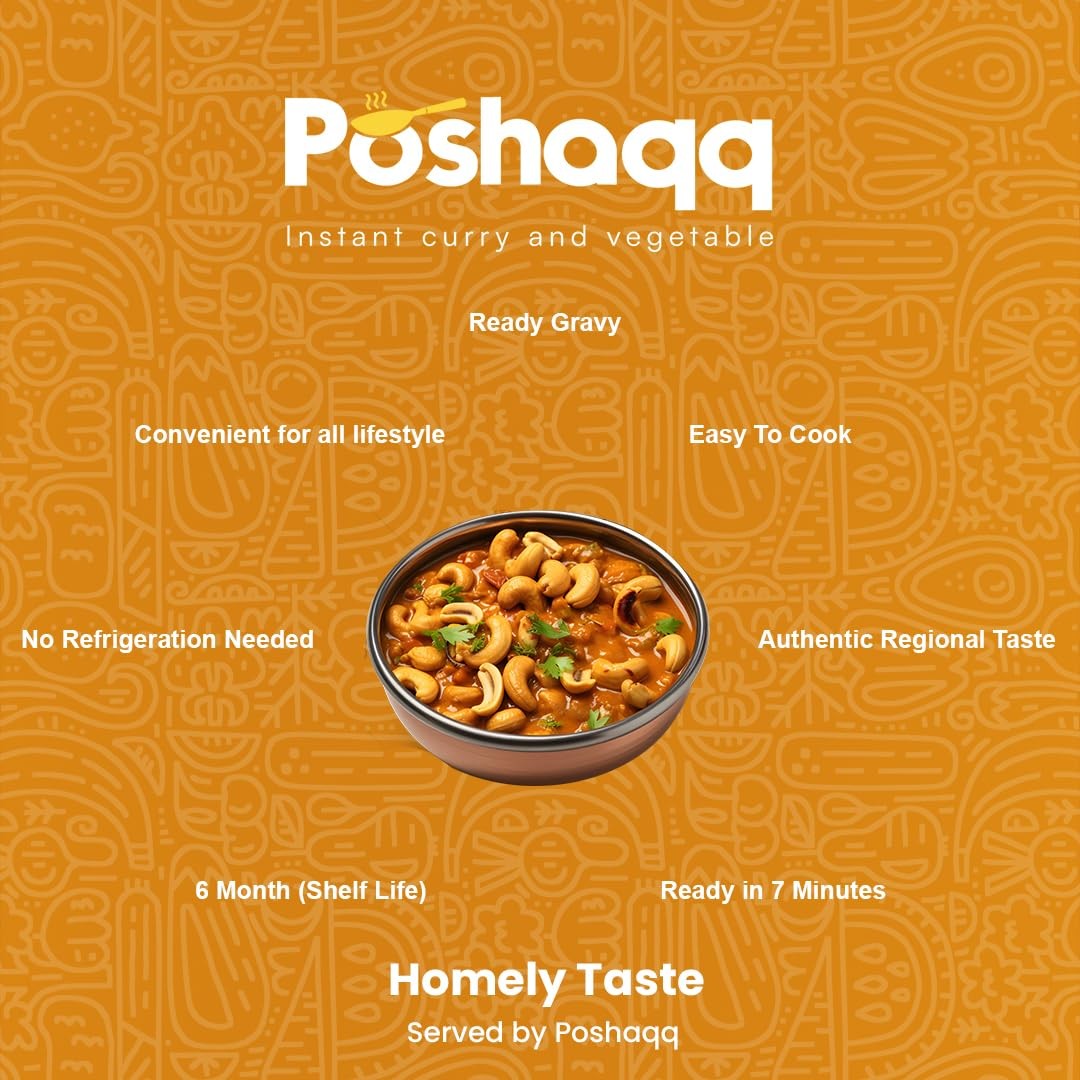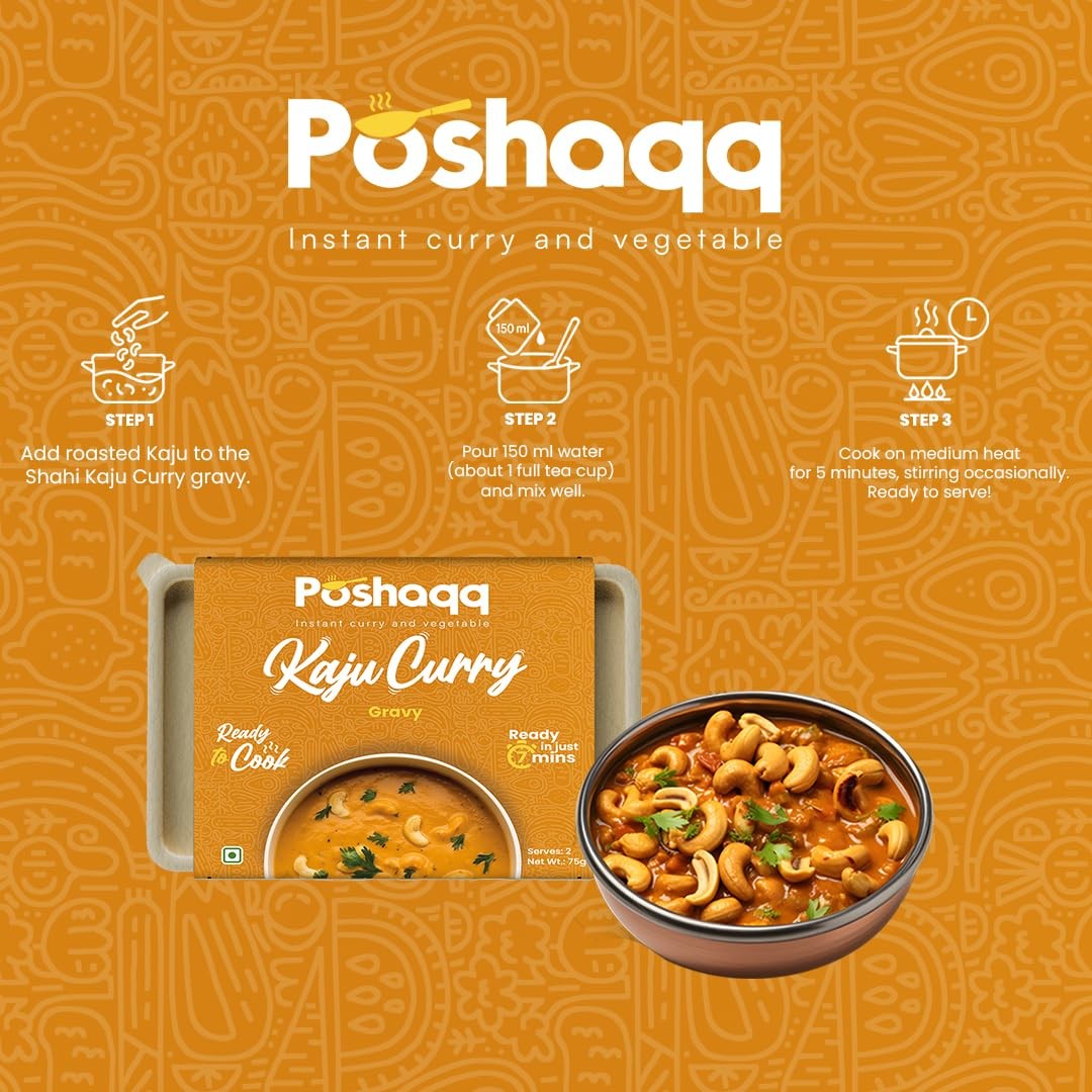Poshaqq Kaju Curry Ready-to-Cook Kit | Creamy Cashew Curry | Premium Indian Dish | 7-Minute Cooking